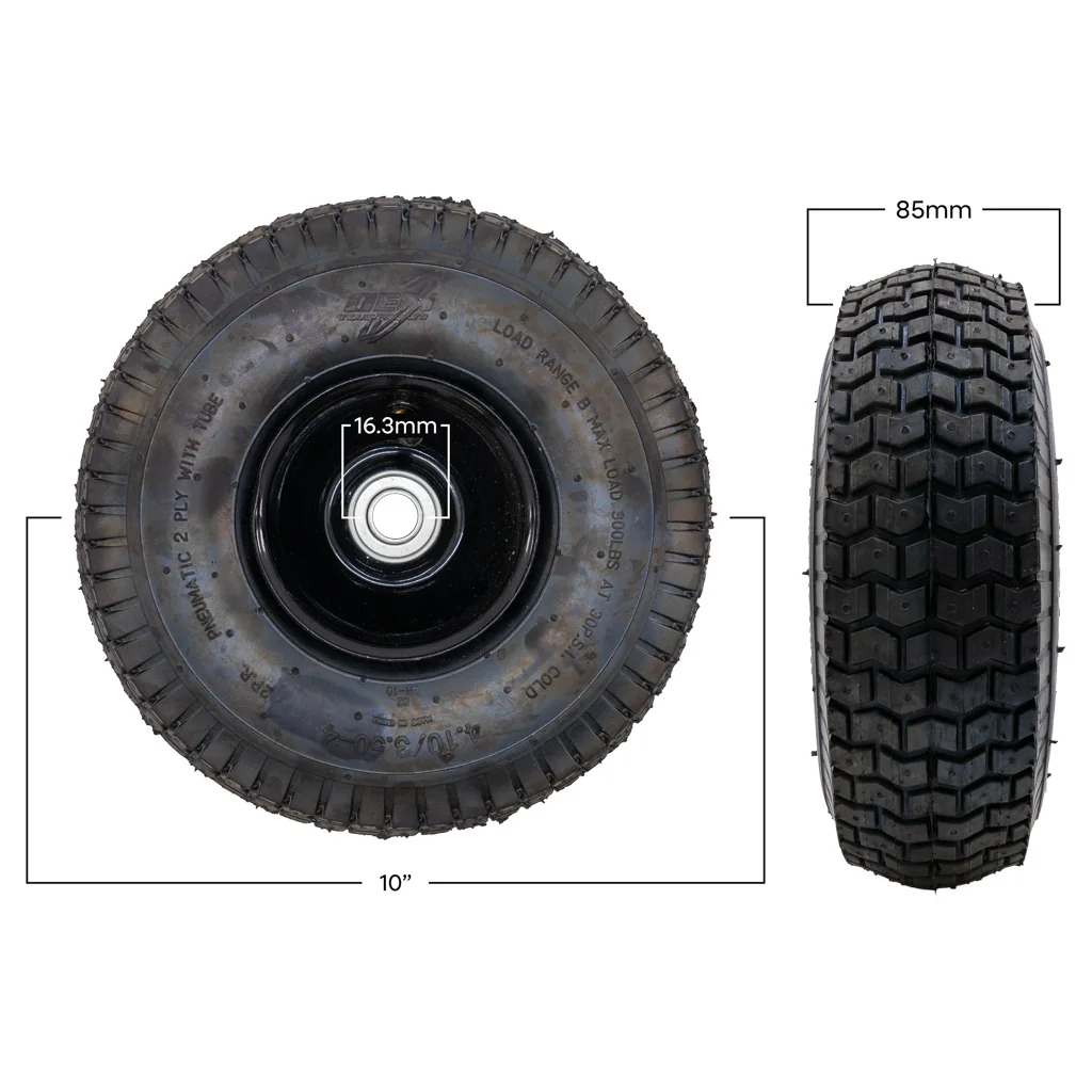 WHEEL ASSEMBLY, 10″ X 4″ PNEUMATIC, BLACK