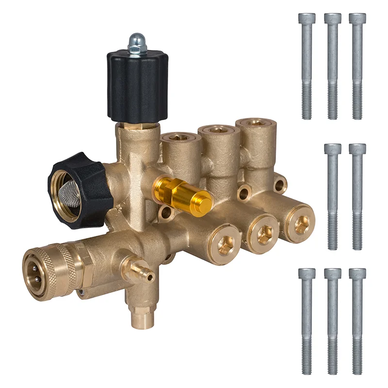 Experience enhanced control with the Simpson 7108752 Manifold Kit. This assembly includes an adjustable unloader valve, making it ideal for FNA series high-pressure pumps. Crafted from durable brass, it promises long-lasting performance and precise operation in demanding applications.